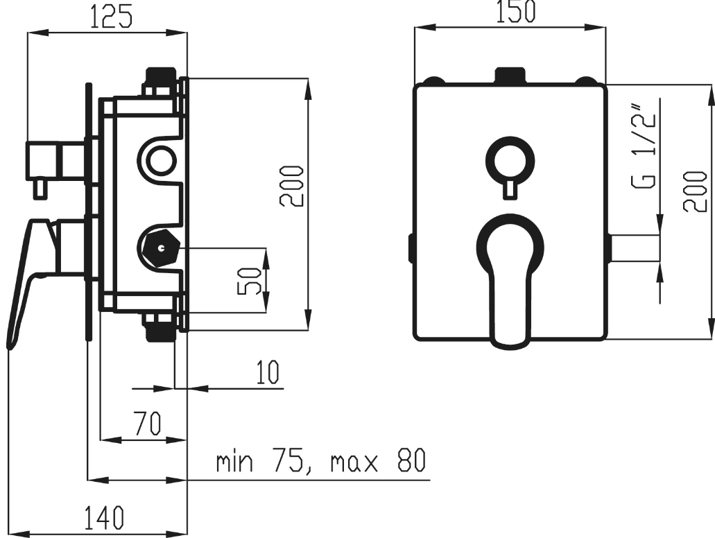 Podomítková baterie s boxem 2 vývody, Metalia 54