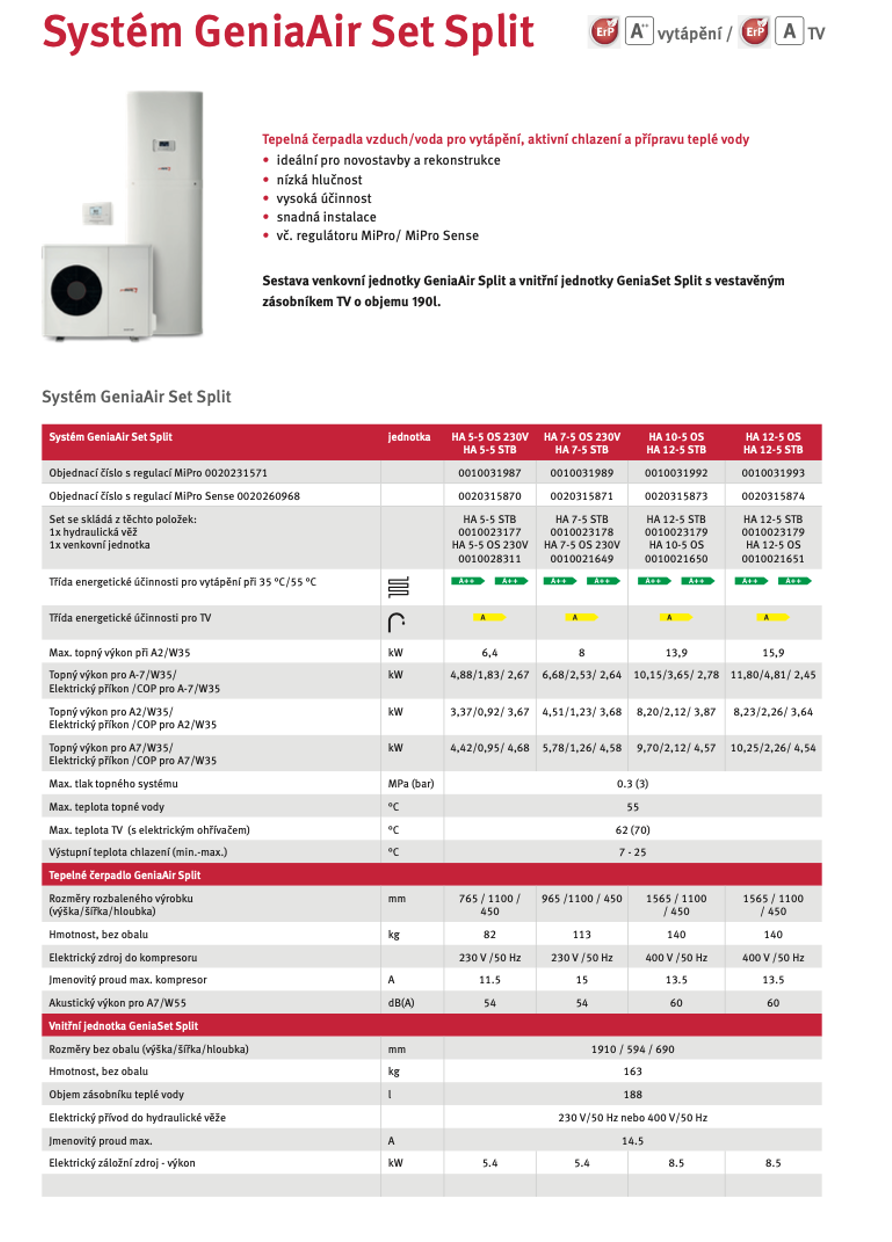 PROTHERM GENIAAIR SPLIT HA 10-5 OS + HA 12-5 WSB tepelné čerpadlo 9,7kW, 230/400V, vzduch-voda, venkovní+vnitřní jednotka