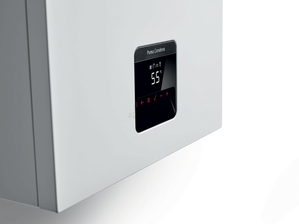 Neobvykle kompaktní nástěnný kombinovaný kotel Puma Condens se vejde i do těch nejmenších prostor. Je proto ideální pro malé byty s omezeným prostorem.