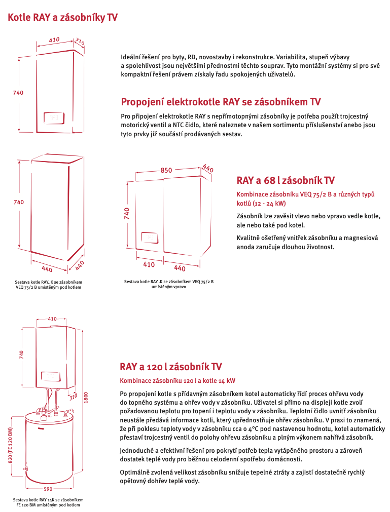 Závěsné elektrokotle RAY nabízí moderní vytápění bytů a rodinných domů. Provoz kotle je velmi jednoduchý a tichý. Kotle jsou již z výroby kompletně vybaveny všemi provozními a bezpečnostními prvky včetně základní regulace. Elektrokotle RAY mají eBus komunikační rozhraní, plynulou modulaci výkonu a vestavěnou základní ekvitermní regulaci.