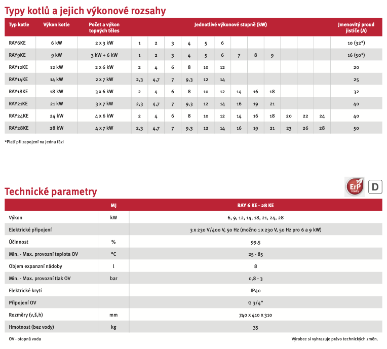 | Elektrické připojení | 3 x 230 V/400 V, 50 Hz (možno 1 x 230 V, 50 Hz pro 6 a 9 kW) |
