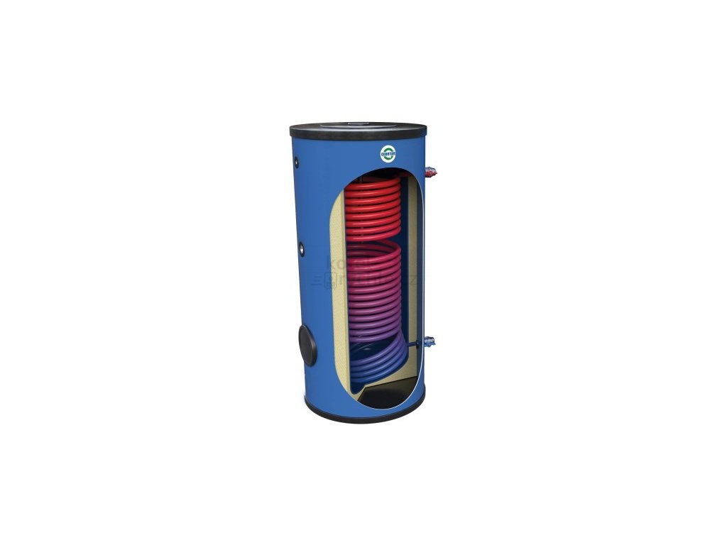 - Ocelový zásobník s vnitřním smaltovaným povrchem a velkoplošným tepelným výměníkem pro ohřev a akumulaci užitkové vody