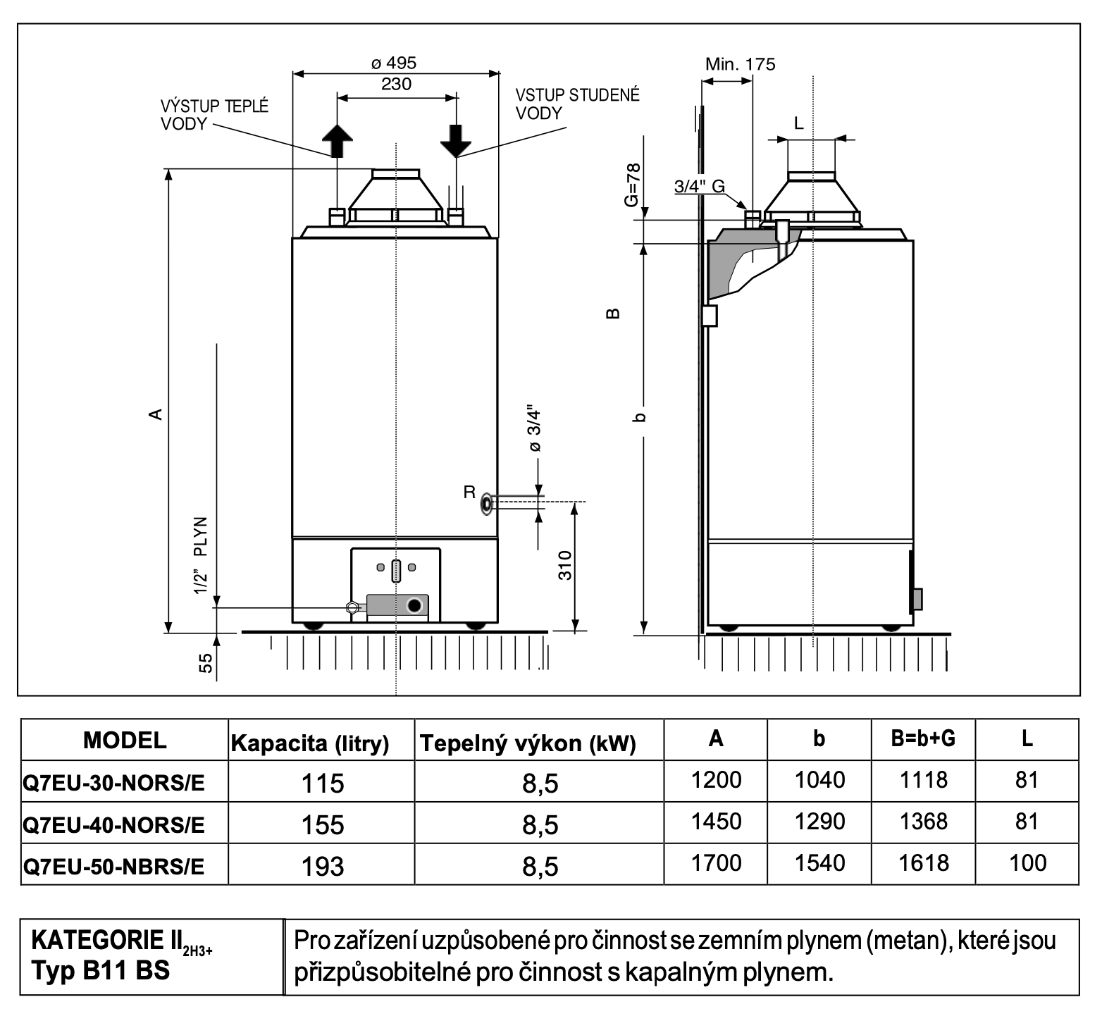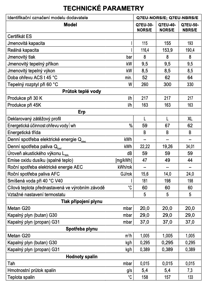 QUANTUM Q7EU-30-NORS/E zásobníkový ohřívač 115l, plynový, stacionární