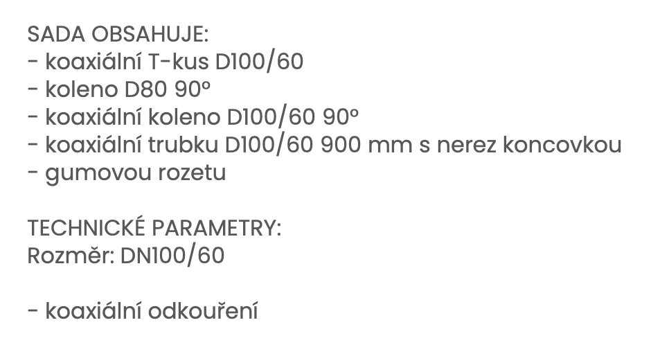 QUANTUM sada D100/60, koaxiální, 900mm, horizontální, přes zeď