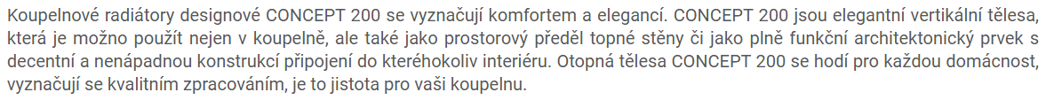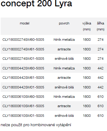 RADIÁTOR 200 LYRA designový 1800/610, středové připojení