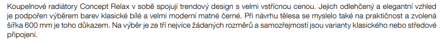 RADIÁTOR 200 RELAX koupelnový 600/1495, klasické připojení