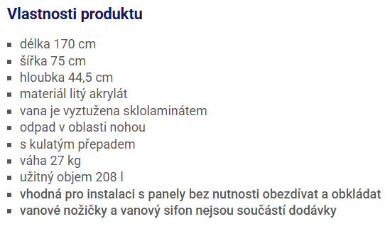 RAVAK 10° vana 170x75 cm, bez nožiček