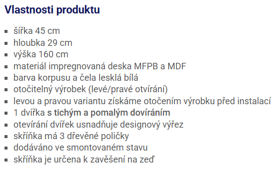RAVAK 10° vysoká skříňka 45x29x160 cm