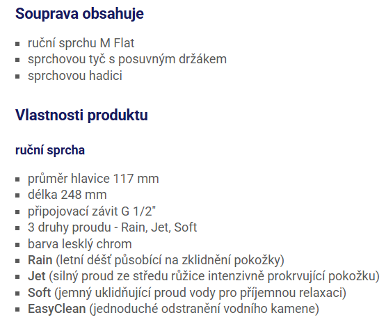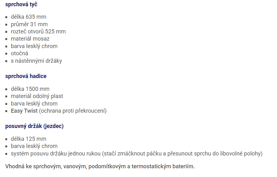 | Typ: | sprchová hlavice s hadicí a tyčí |