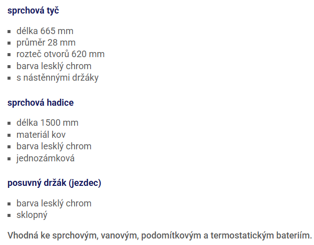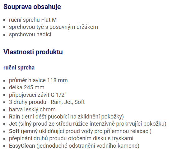 | Typ: | sprchová hlavice s hadicí a tyčí |