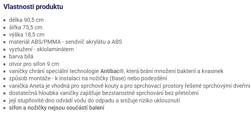 RAVAK ANETA 75 LA sprchová vanička