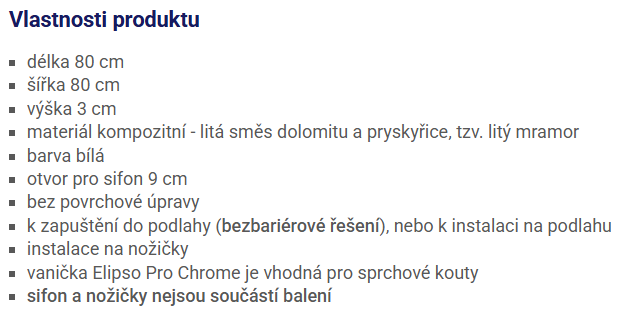RAVAK ELIPSO PRO CHROME 80 sprchová vanička