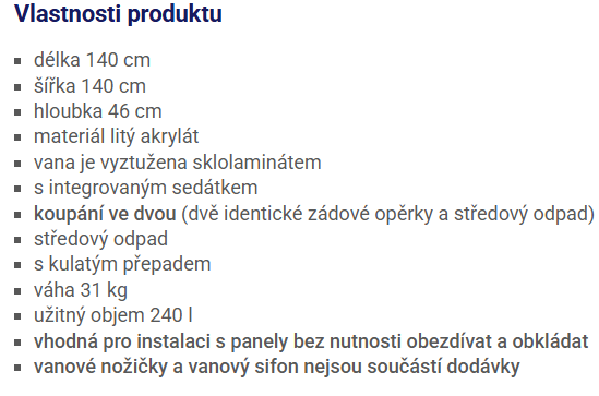 | Speciální typ vany: | pro dva |