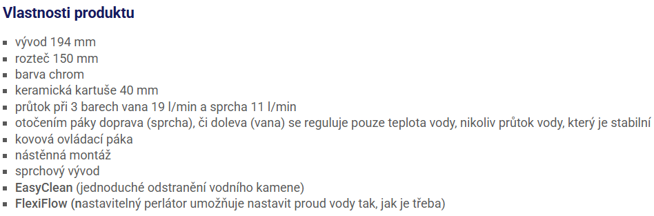 | Přepínač vana/sprcha: | ano |
