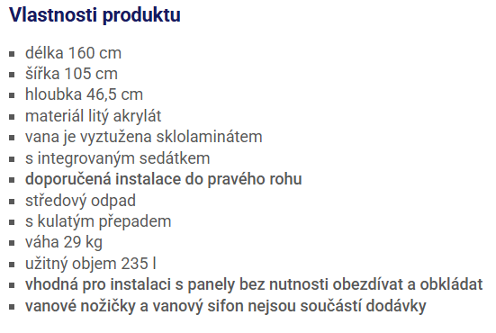 RAVAK ROSA II rohová vana 160x105 cm, bez nožiček, akrylát
