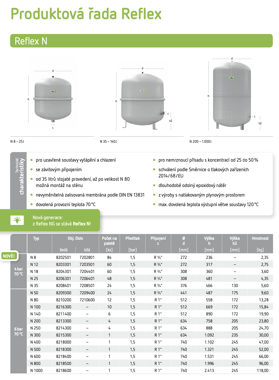 - membrána dle DIN EN 13831, dovolená provozní teplota 70 °C