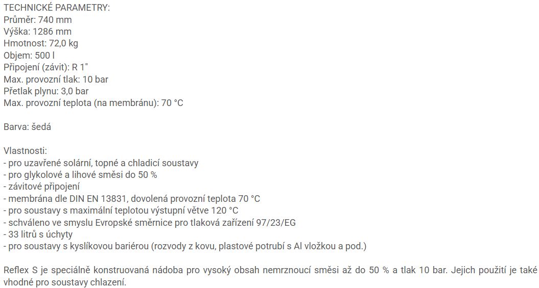 REFLEX S 500/10 expanzní nádoba 500l, 10bar, šedá