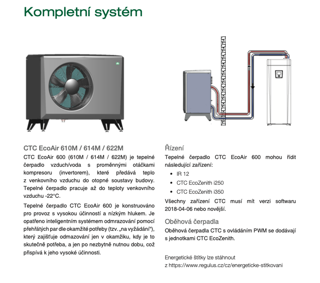Fungování produktu: Tepelné čerpadlo využívá energii z okolního vzduchu nebo země a pomocí kompresoru a výparníku přeměňuje tuto energii na teplo, které je distribuováno do vnitřních prostor a do systému teplé vody. Hydraulická jednotka RegulusBox zajišťuje regulaci a optimalizaci provozu tepelného čerpadla pro dosažení maximální účinnosti.