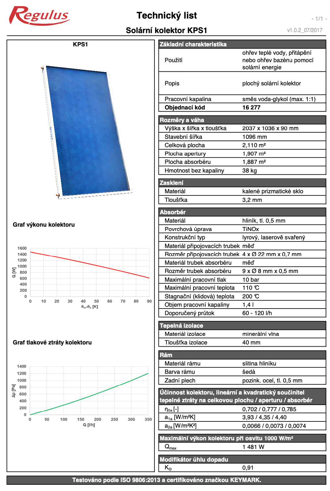 Regulus KPS1 solární kolektor 2,11m2 deskový