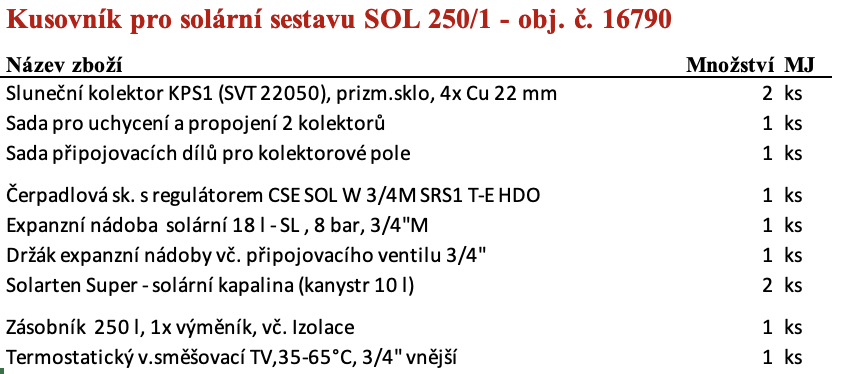 REGULUS sestava solární Sestava SOL 250/1, s ohřívačem