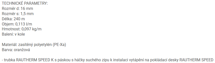 REHAU RAUTHERM SPEED K trubka 16x1,5mm, 240m, v kole, PE-Xa, oranžová