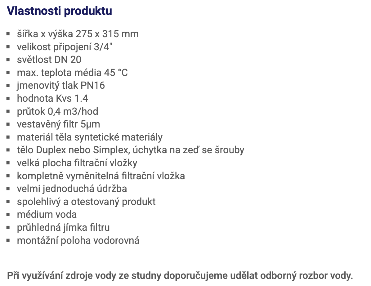 | Filtrace - jemnost sítka (mm;µm): | 25µm |