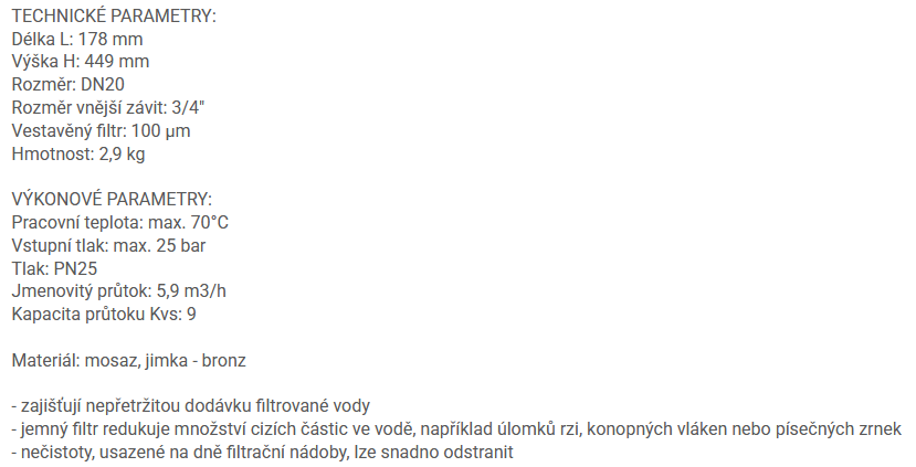 | Materiál tělo/filtr: | mosaz/mosaz |