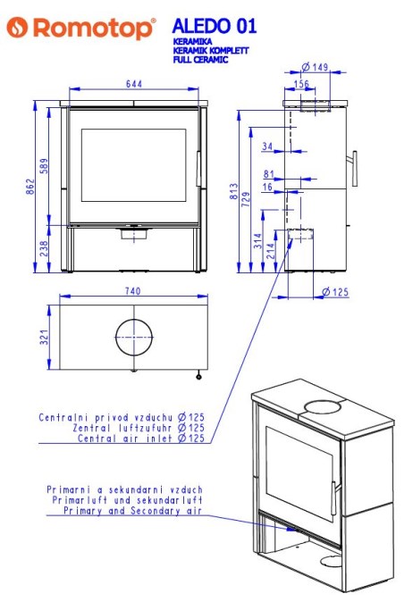 Kamna disponují systémem CPV – centrální přívod externího vzduchu. Ve standardu je možné zapojení horního nebo zadního odvodu spalin. Díky sekundárnímu přívodu vzduchu je sklo dvířek omýváno, a tak nedochází k usazování nečistot. Spalovací komora je vyložena šamotovými tvarovkami.
