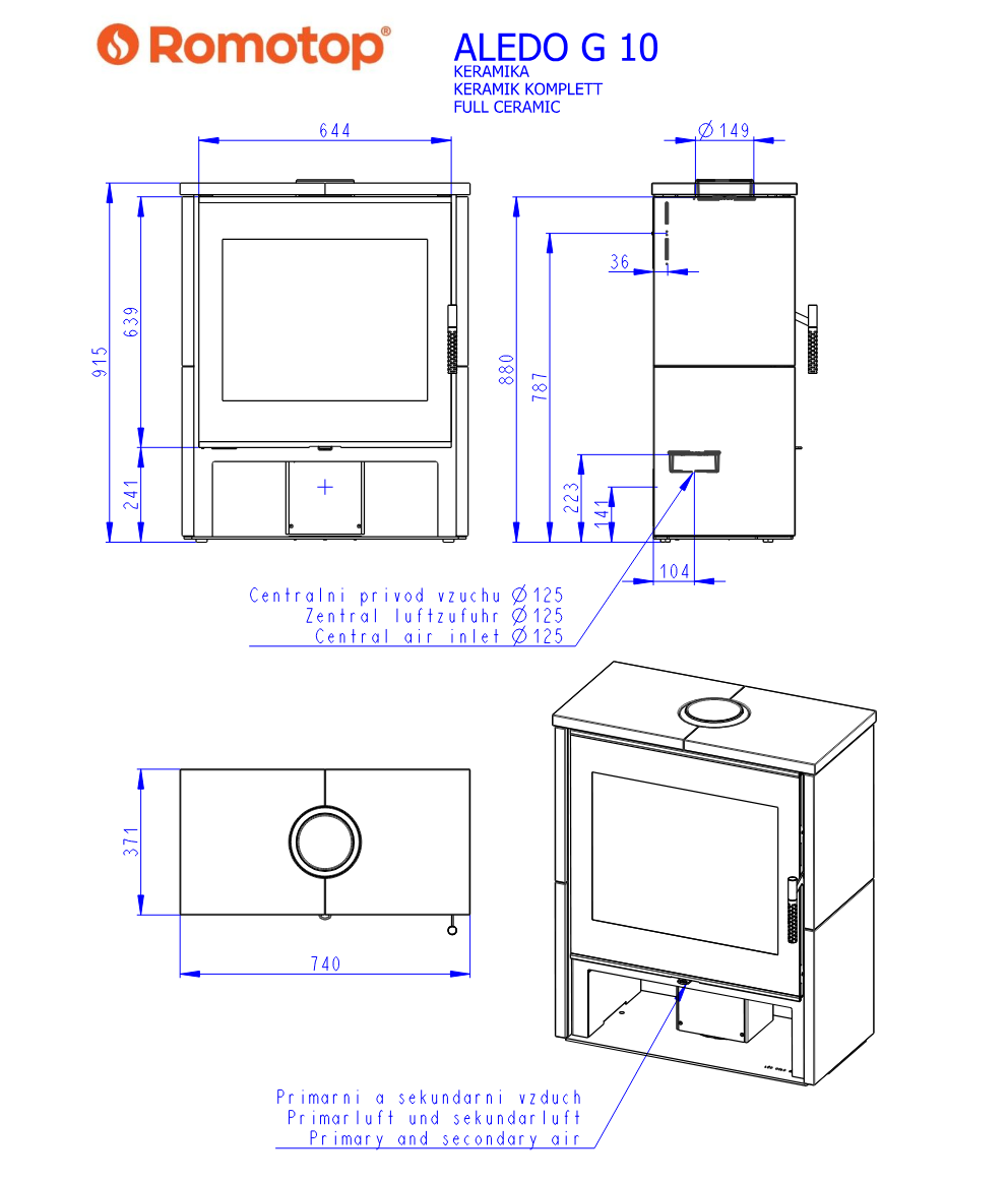 ROMOTOP ALEDO G krbová kamna 6kW, černá/silver