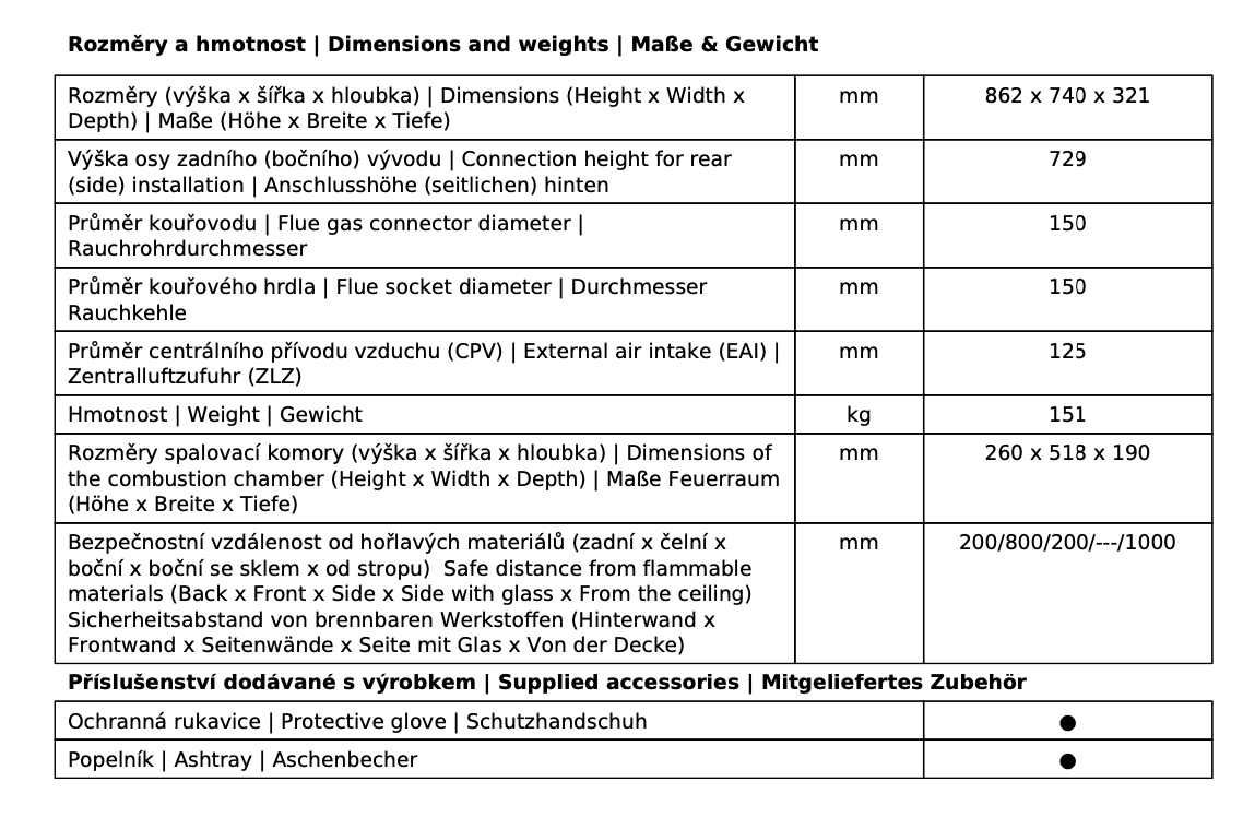 | Průměr kouřovodu: | 150 mm |