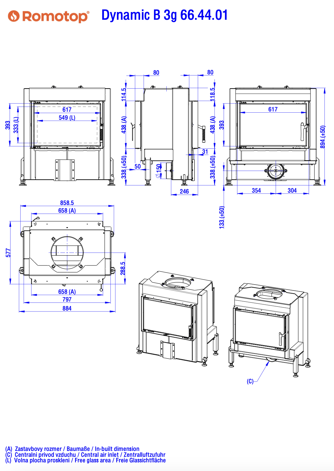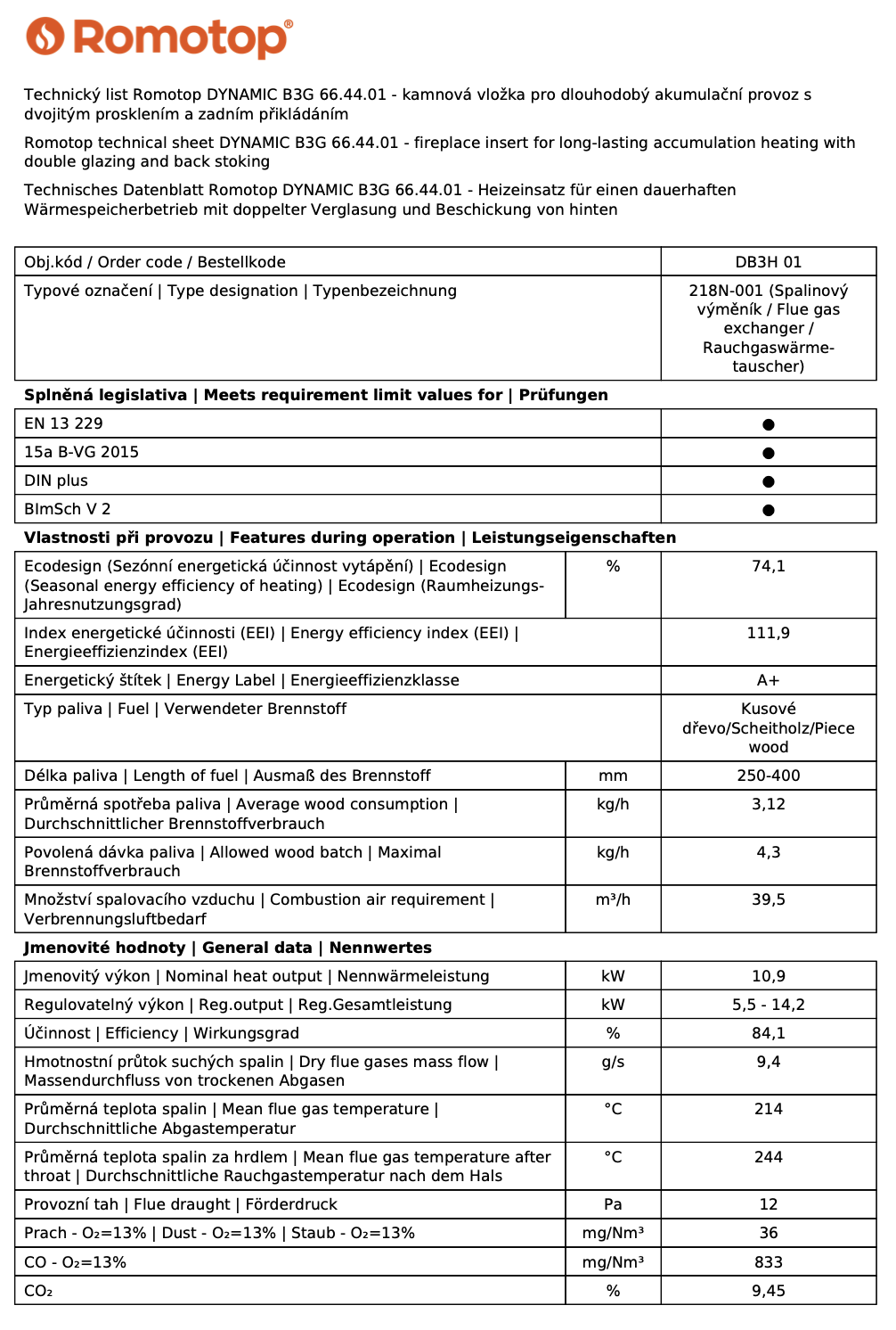 ROMOTOP DYNAMIC B3G 66.44.01 krbová vložka 5,5 - 14,2 kW, černá