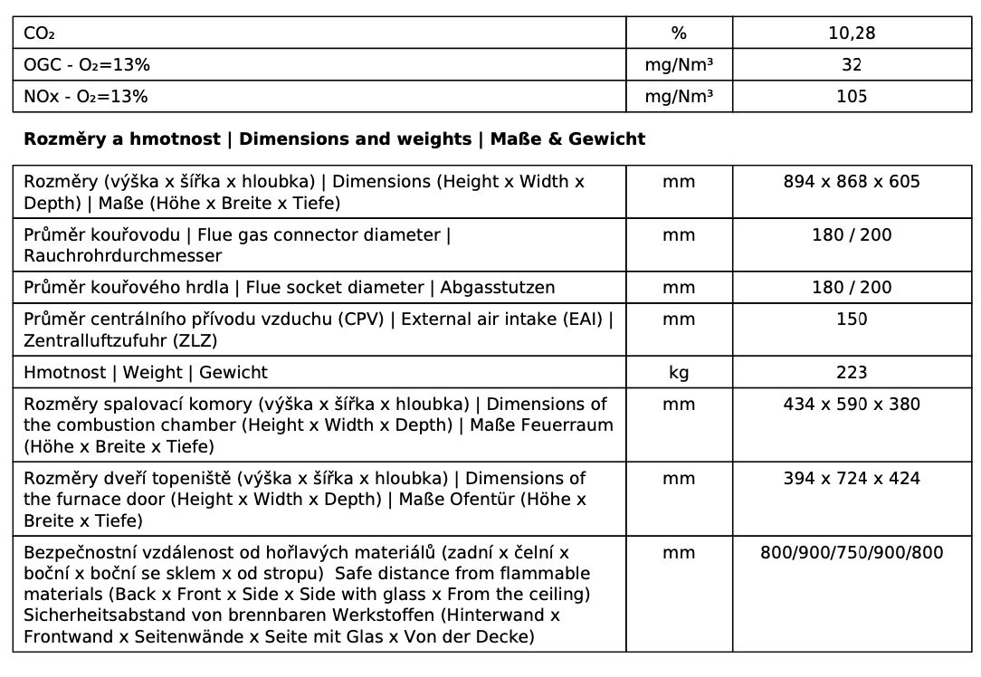 | Průměr kouřovodu: | 200/180 mm |