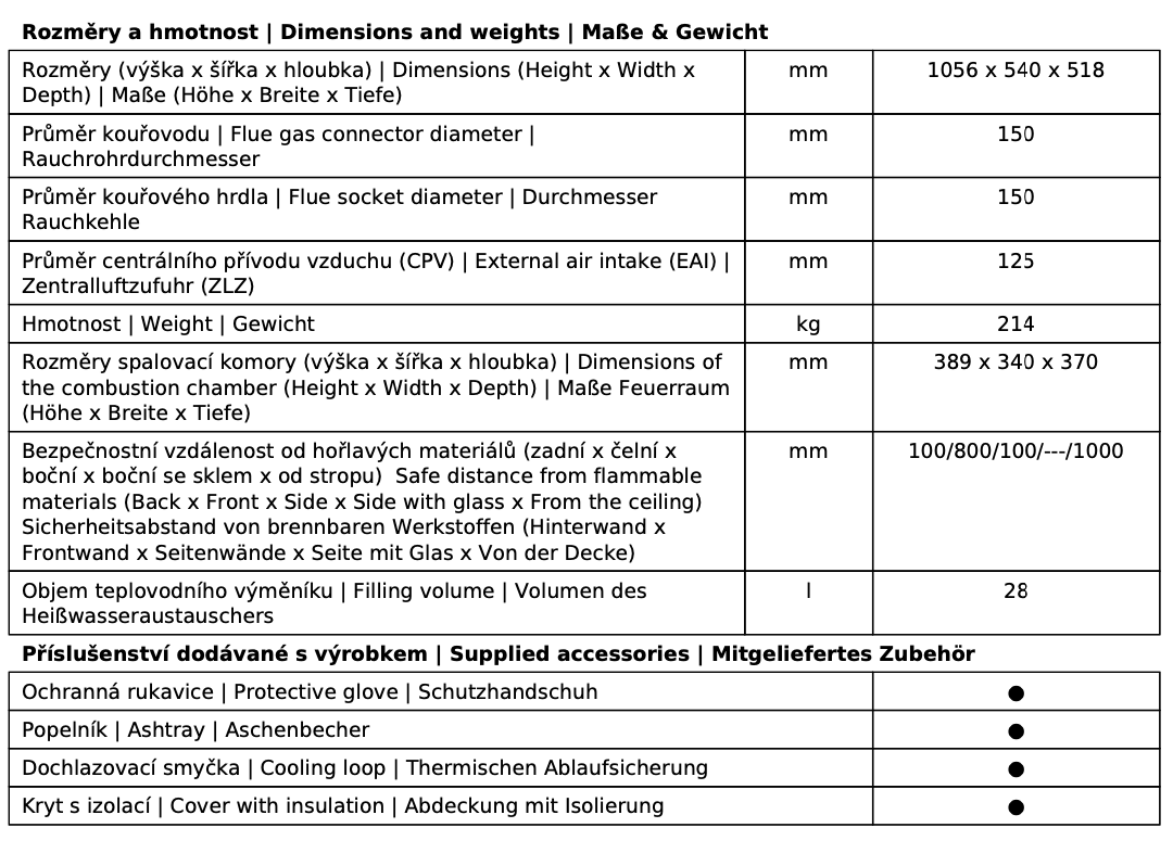 Kamna jsou vybavena vychlazovací smyčkou a kapilární klapkou přívodu vzduchu proti přetopení výměníku.