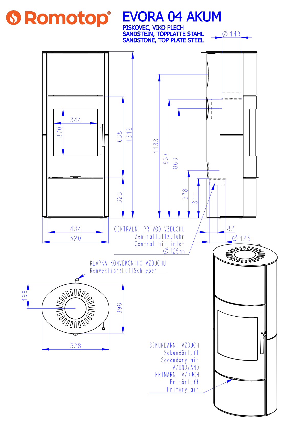 ROMOTOP EVORA 04 AKUM krbová kamna 2,0-6,5kW, akumulační, černá/pískovec