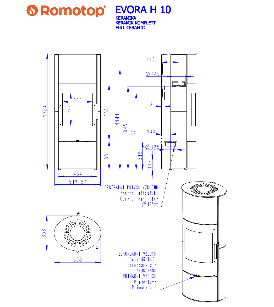 ROMOTOP EVORA H akumulační krbová kamna 2,5-6,6kW, cherry