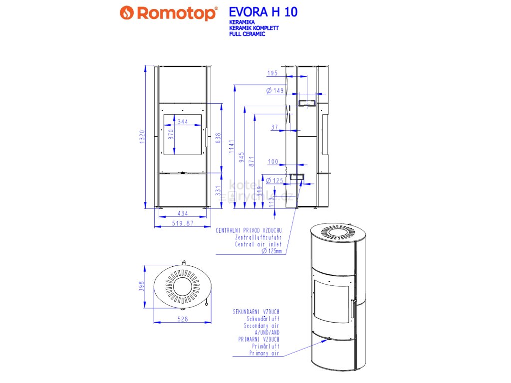 ROMOTOP EVORA H akumulační krbová kamna 2,5-6,6kW, černá/champagne