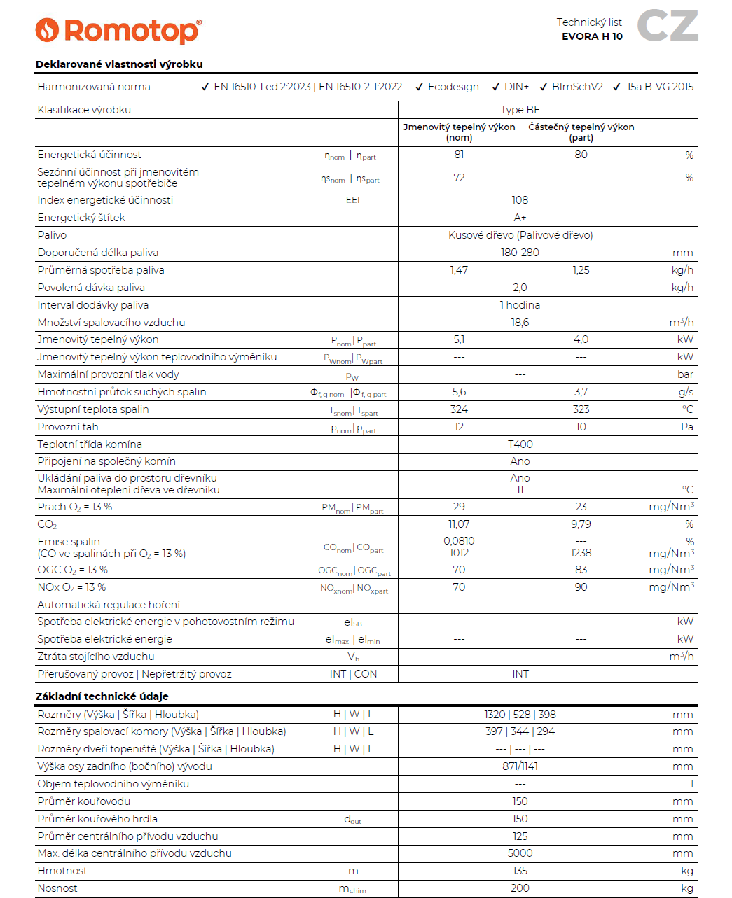 | Průměrná spotřeba dřeva: | 1,4 kg/h |