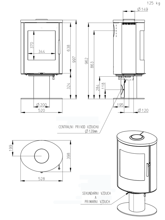 | Průměr kouřovodu: | 150 mm |