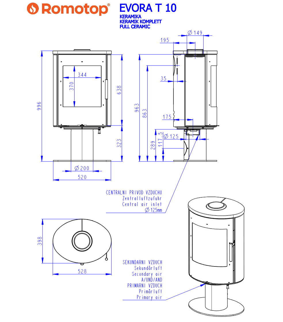 ROMOTOP EVORA T akumulační krbová kamna 2,5-6,6 kW, smetanová s pigmentem