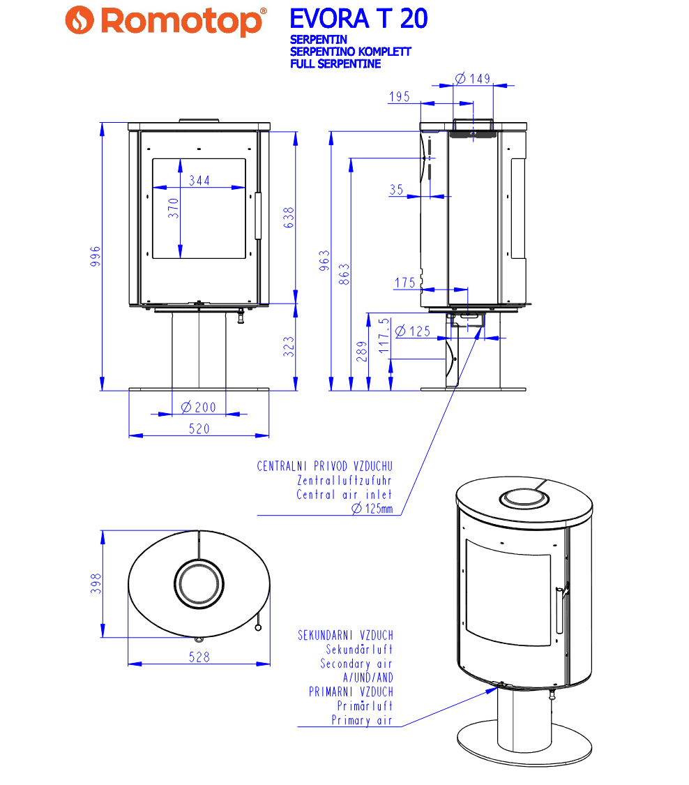 ROMOTOP EVORA T krbová kamna 2,5-6,6kW, akumulační, černá/kámen