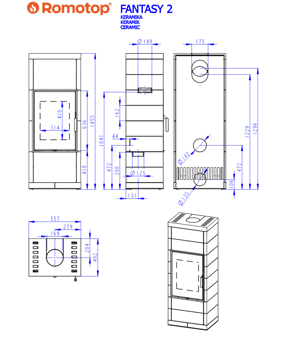 ROMOTOP FANTASY 2 krbová kamna 2,9-7,5 kW, perlová