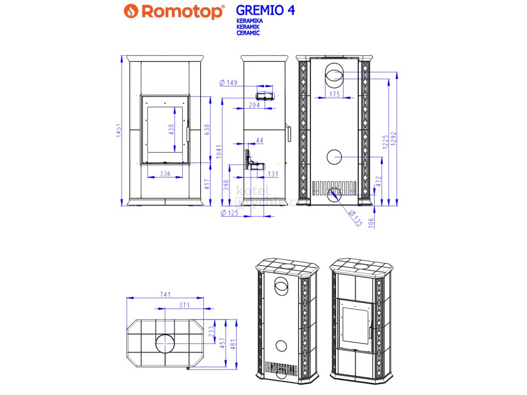 ROMOTOP GREMIO 4 krbová kamna 2,9-7,5 kW, smetanová s pigmentem