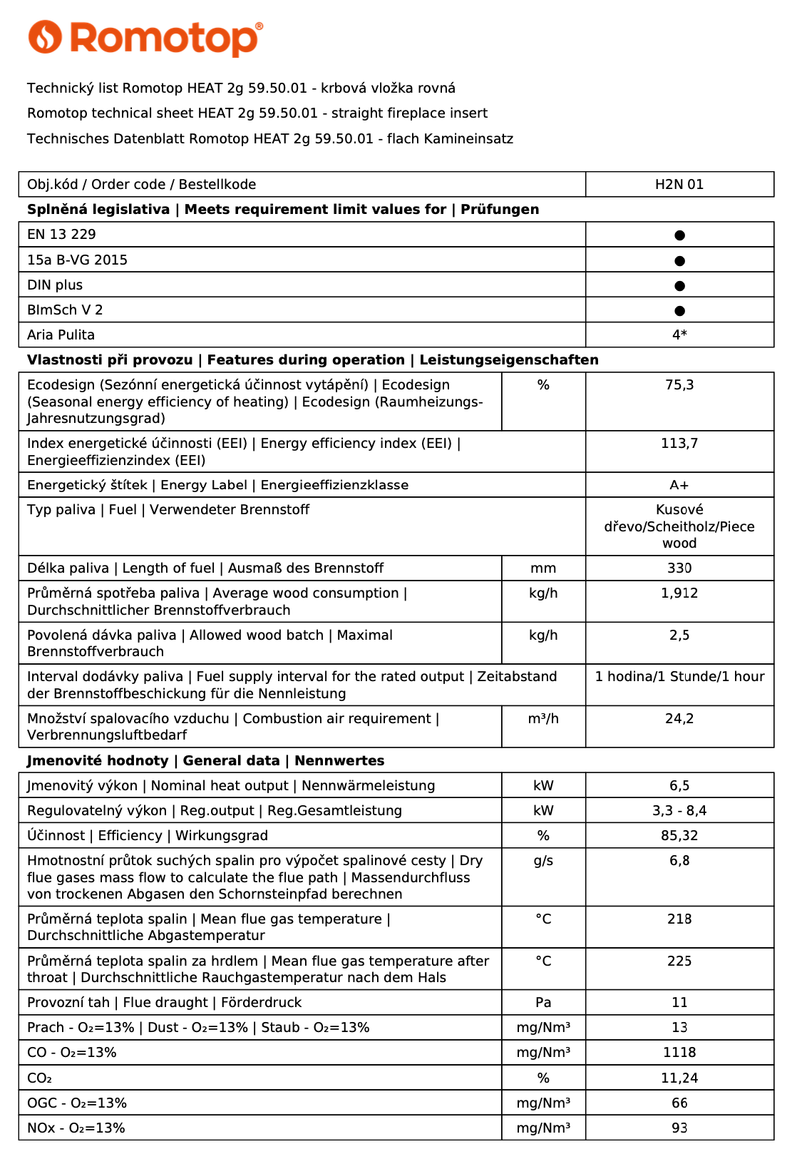 ROMOTOP HEAT 2G 59.50.01 krbová vložka 3,3-8,4kW, černá