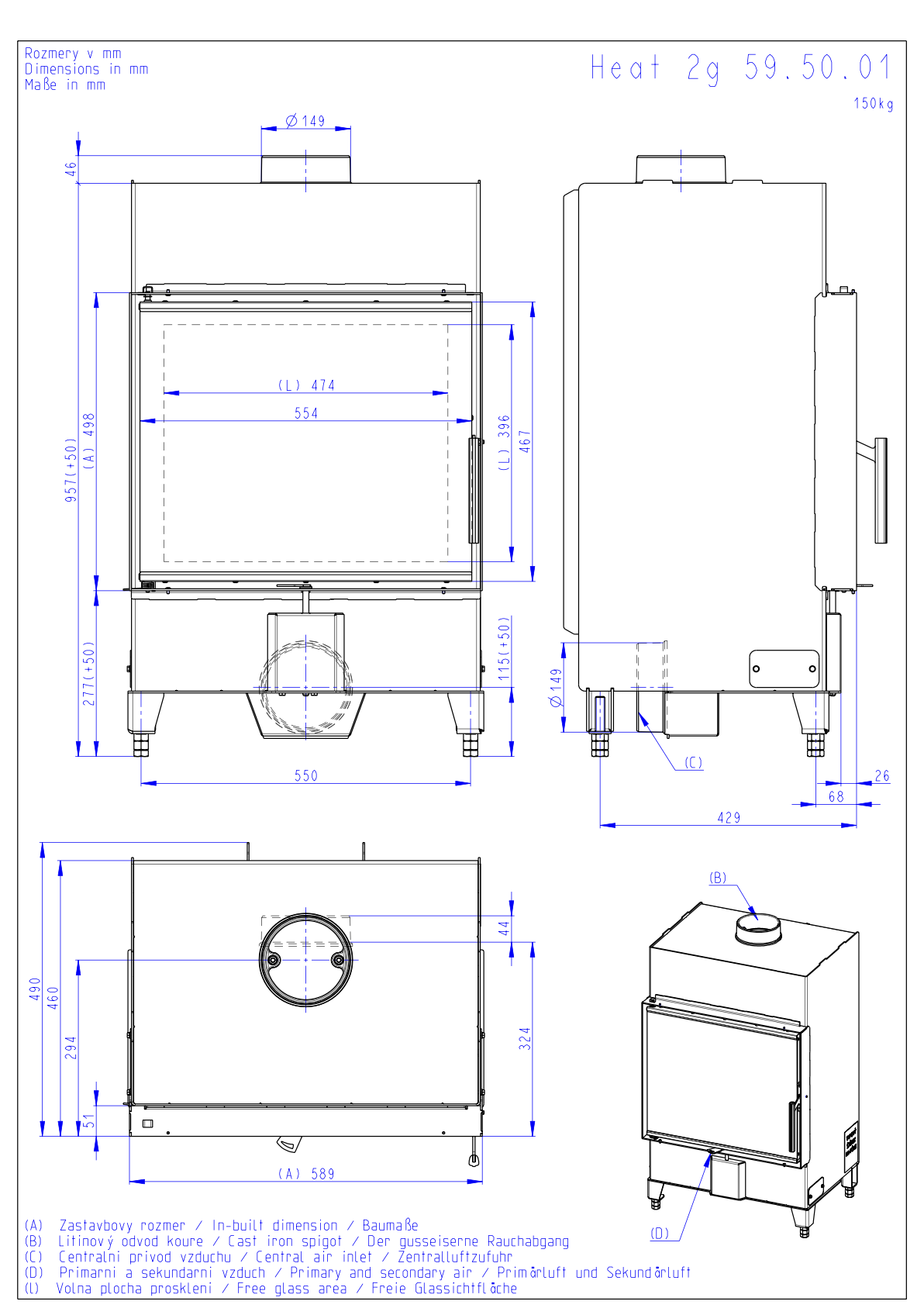| Průměr kouřovodu: | 150 mm |
