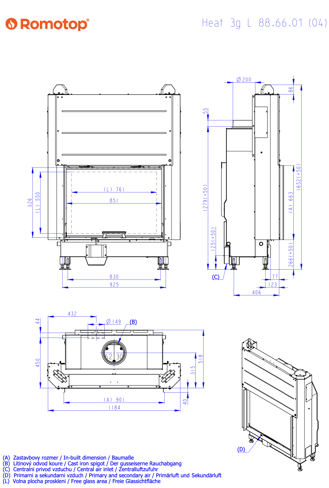 ROMOTOP HEAT 3G L 88.66.04 krbová vložka 5,5-14,2kW, s výsuvnými dvířky
