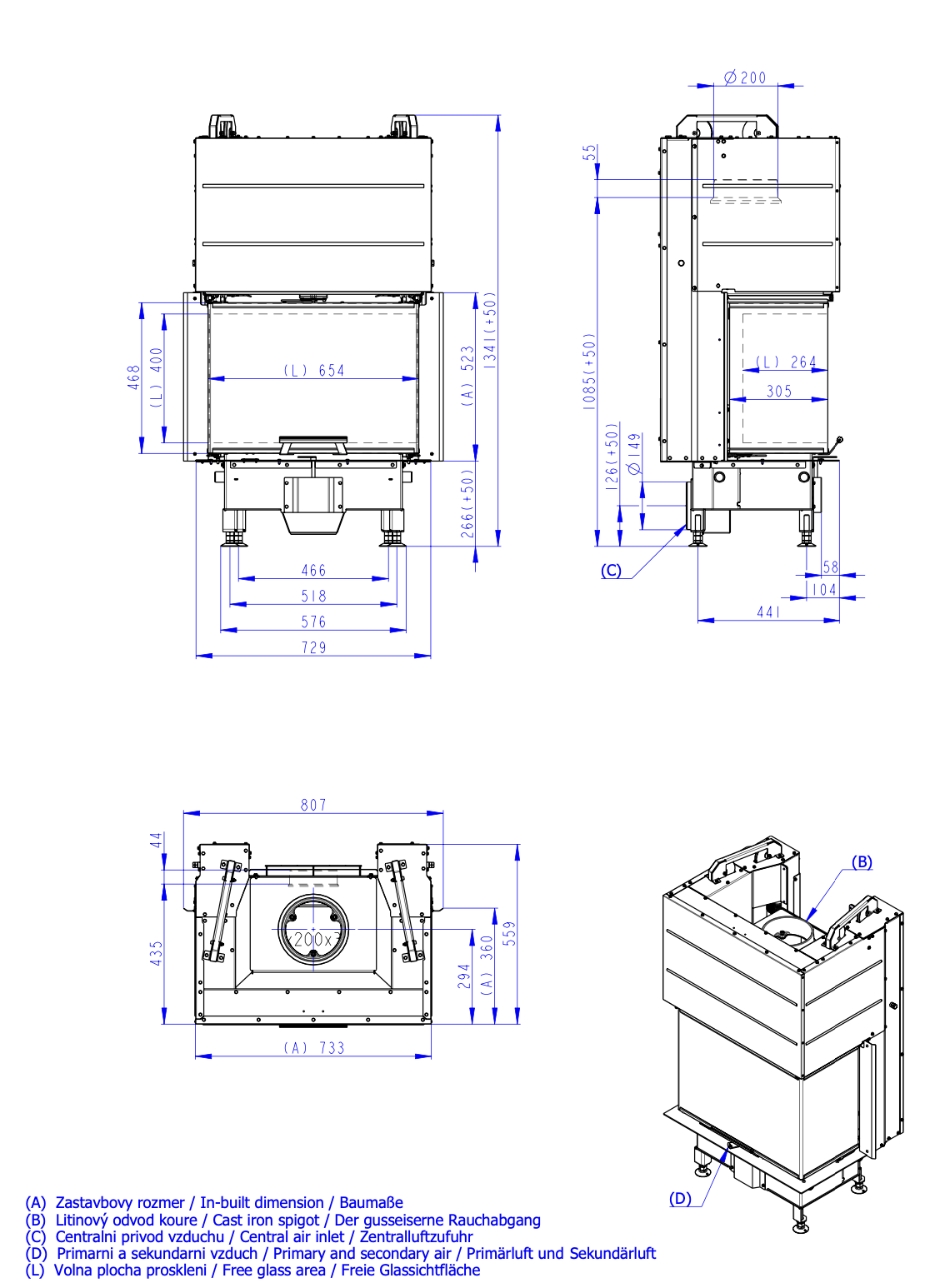 ROMOTOP HEAT C 3G L 65.52.31.24 krbová vložka 3,9-10,1 kW, s výsuvnými dvířky