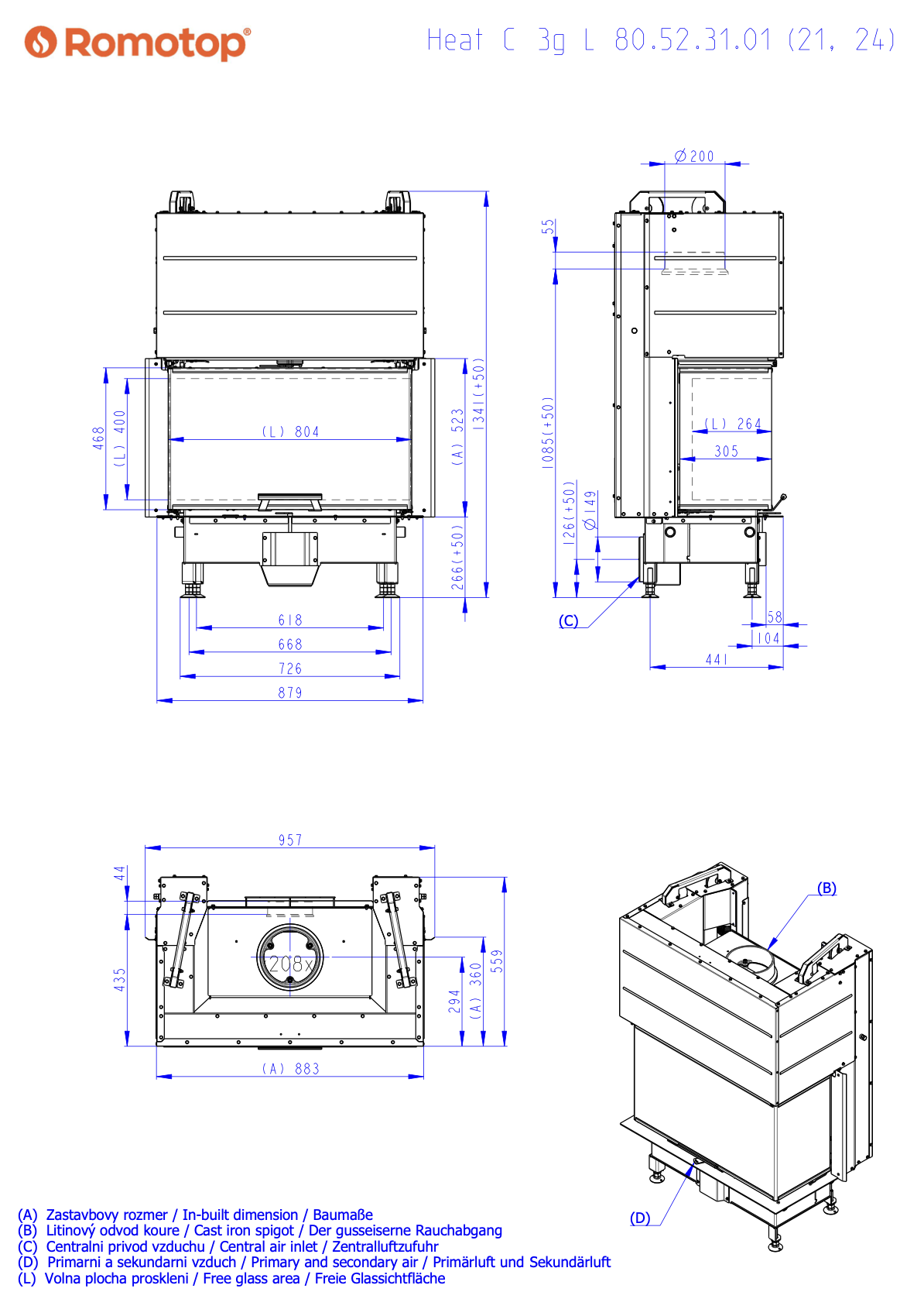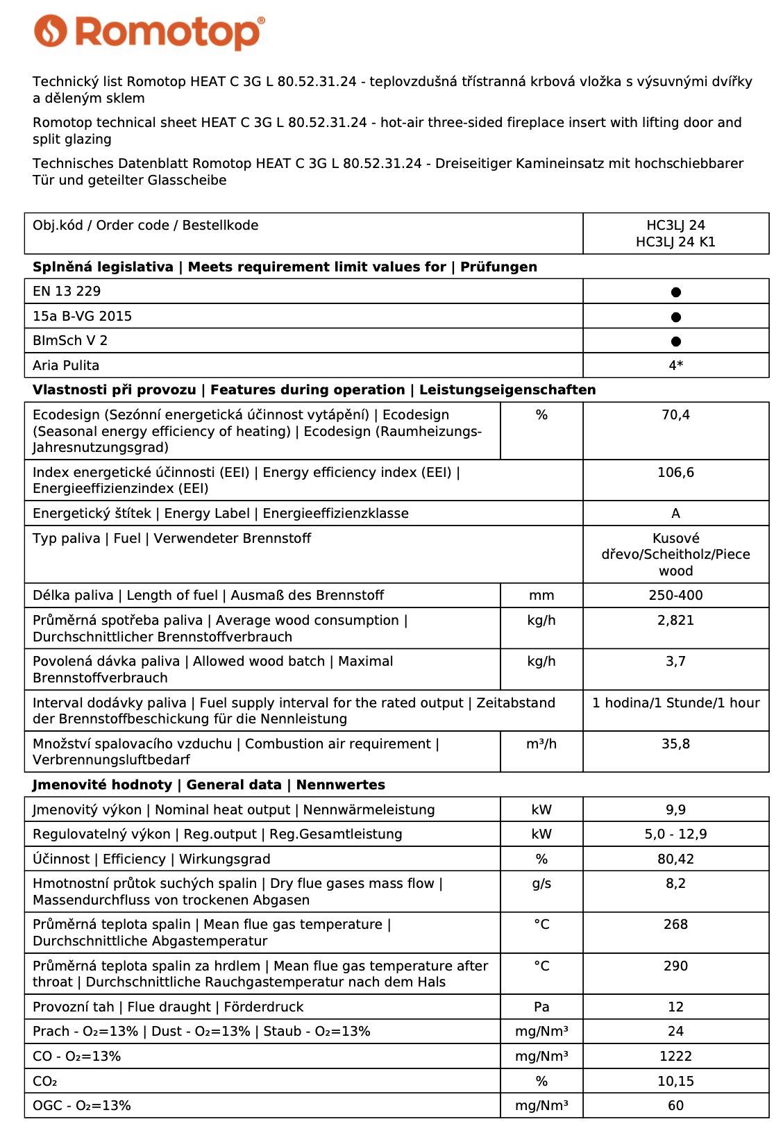 ROMOTOP HEAT C 3G L 80.52.31.24 krbová vložka 5-12,9 kW, s výsuvnými dvířky