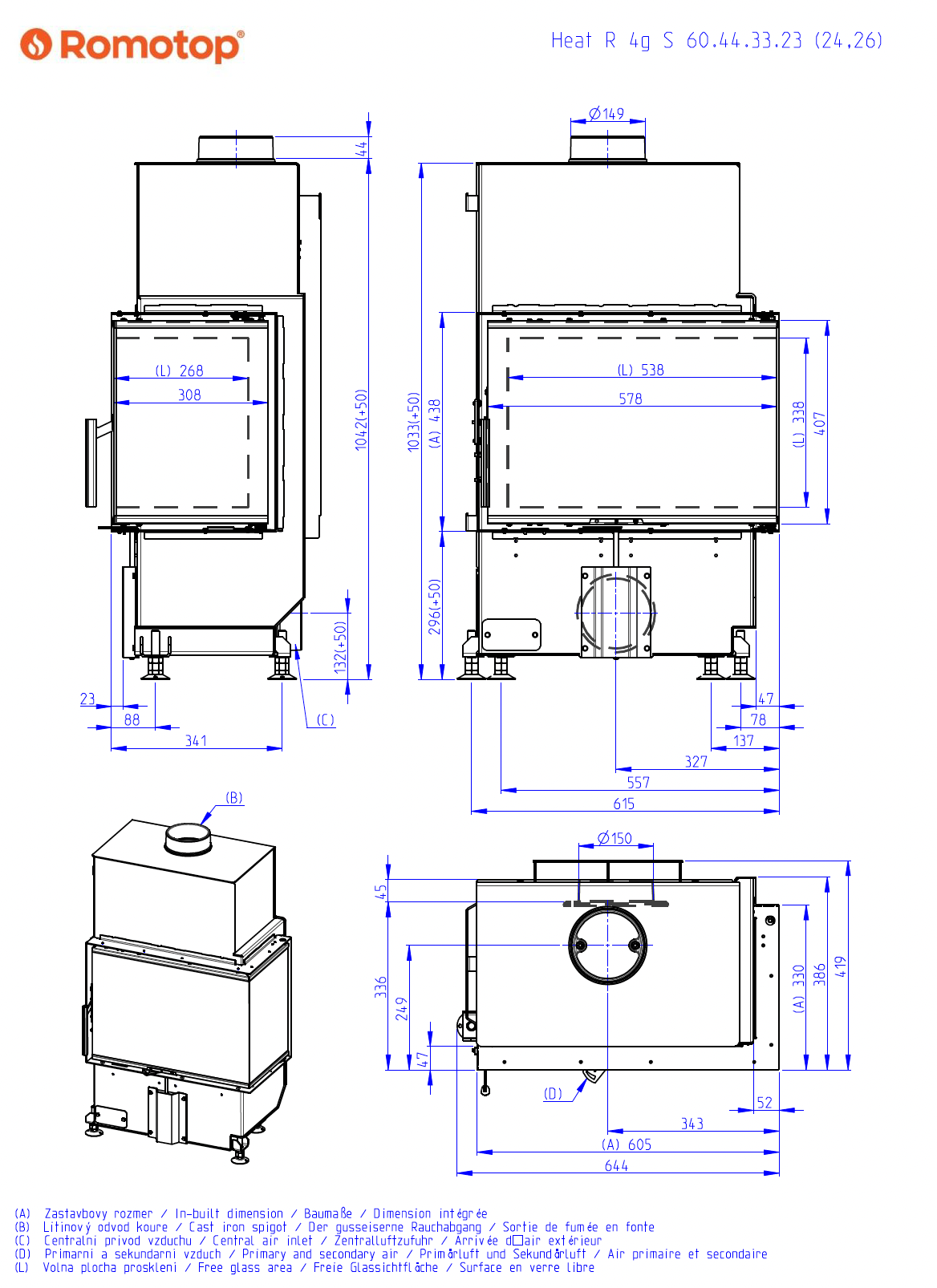 ROMOTOP HEAT L 2G S 60.44.33.23 krbová vložka 2,9-7,4kW, rohová, levá, černý igniton
