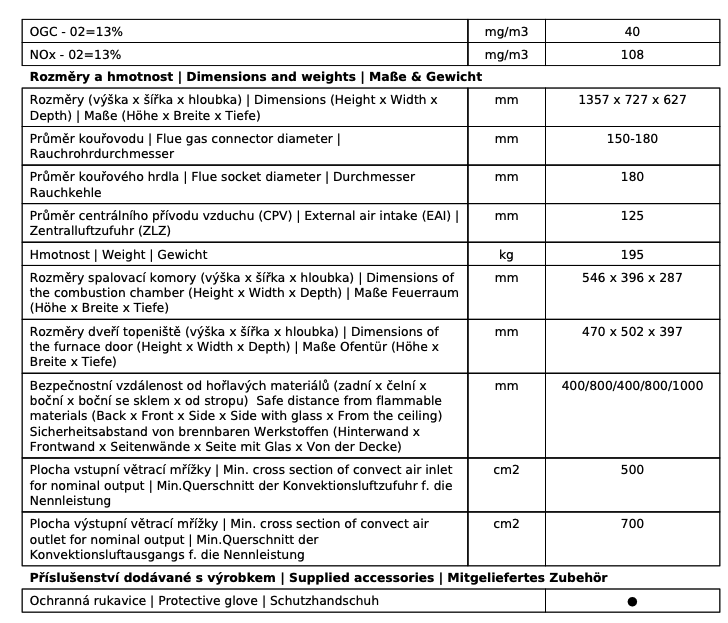 | Průměr kouřovodu: | 180 mm |