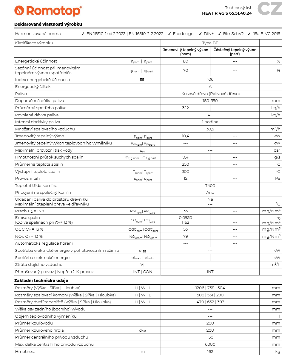 | Průměrná spotřeba dřeva: | 3,1 kg/h |